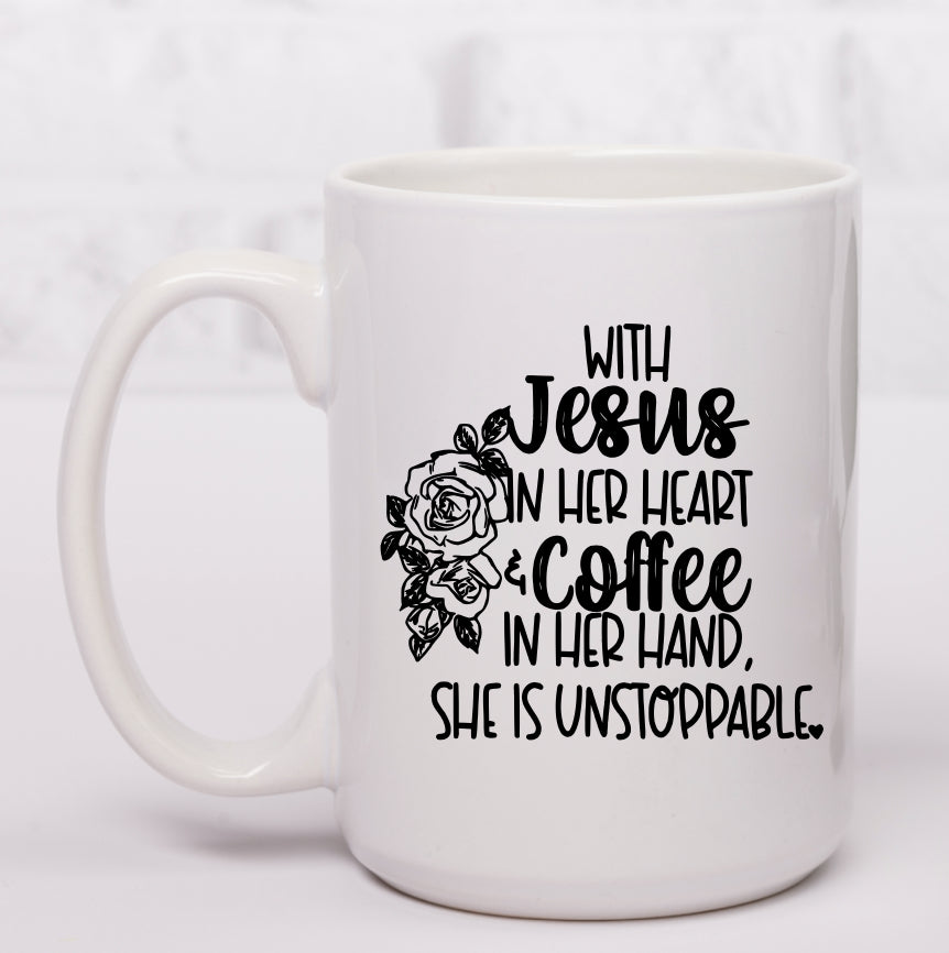 With Jesus In Her Heart & Coffee In Her Hand She Is Unstoppable